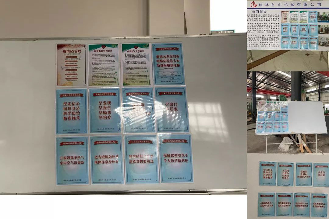 為防控疫情,桂林礦機嚴格按照防控指示精神,從細節處展開貼心嚴密的防護工作,在廠區、辦公室、食堂、宿舍等區域張貼各種防控知識宣傳海報,提高員工的防控意識,保障每一個員工的安全與健康。