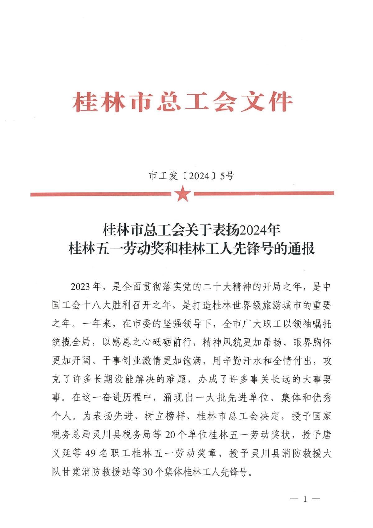 為表?yè)P(yáng)先進(jìn)、樹立榜樣。近日,桂林市總工會(huì)發(fā)文關(guān)于表?yè)P(yáng)2024年桂林五一勞動(dòng)獎(jiǎng)和桂林工人先鋒號(hào)的通報(bào),決定授予唐義廷等49名職工桂林五一勞動(dòng)獎(jiǎng)?wù)隆?